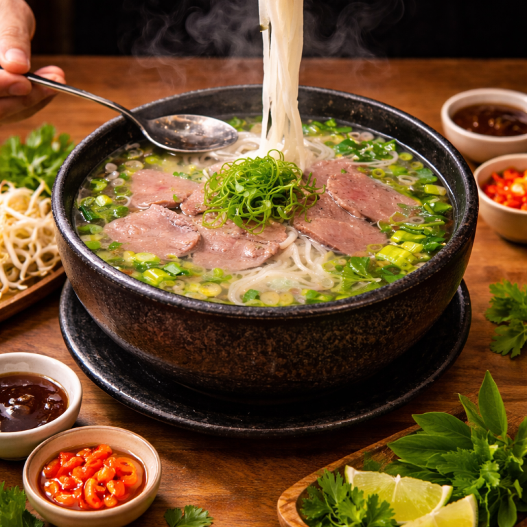 Unsere traditionelle vietnamesische Phở wird mit viel Sorgfalt und nach authentischem Rezept zubereitet. Die aromatische Brühe wird über viele Stunden gekocht und entfaltet dadurch ihren unverwechselbaren, intensiven Geschmack. Serviert mit zarten Reisnudeln, frischen Kräutern und ausgewählten Zutaten entsteht ein harmonisches und wohltuendes Geschmackserlebnis.